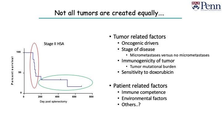 This is something that intrigues me: what is the difference between a dog that presents with stage 2 HSA who dies quickly, versus those who survive for a long time.