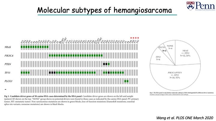 Our two papers hone into these concepts. Mutations in these genes have been identified in HSA. You can now look at druggable targets and inhibitors for canine hemangiosarcoma, and perhaps, you can, if they work, turn them over to the human world for angiosarcoma.